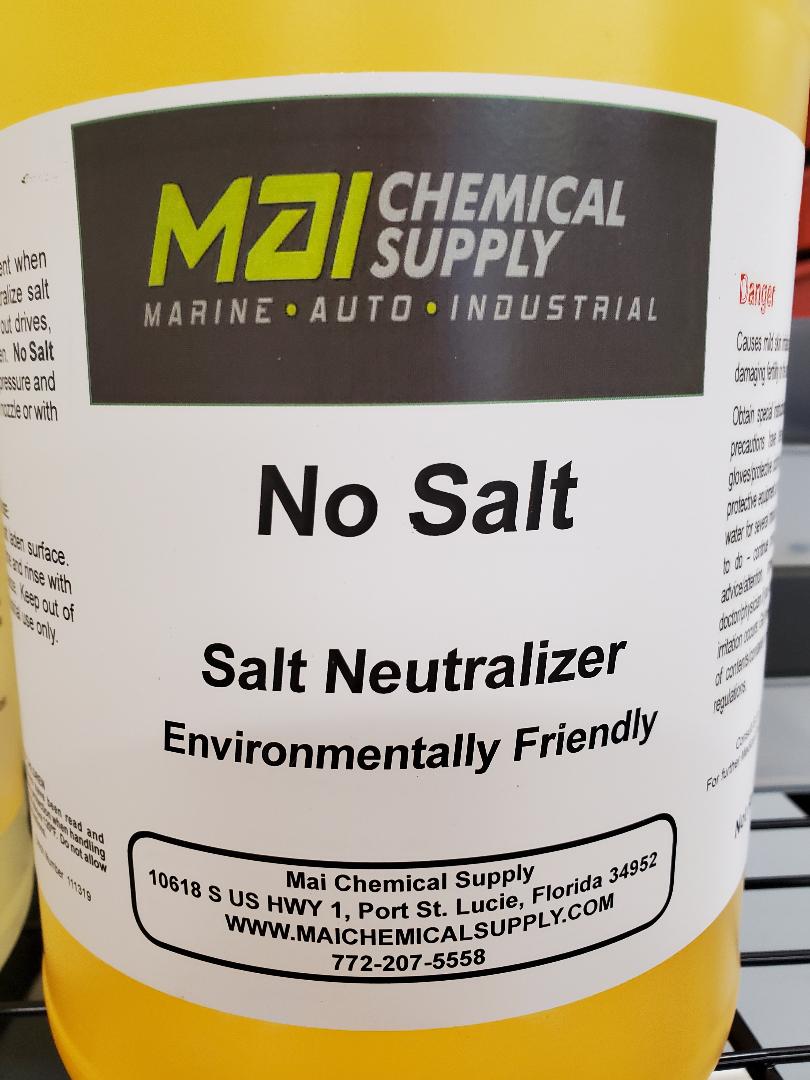 This environmentally friendly detergent when used as directed will clean and neutralize salt in engine compartments, boat hulls, out drives, bilges and any other surface that is salt laden. No salt is designed to be applies with low pressure and then rinsed with a garden hose or pressure washer.