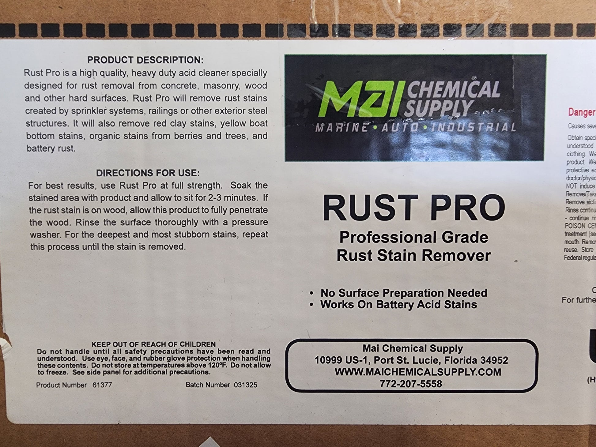 Rust remover for buildings , driveways, concrete surfaces